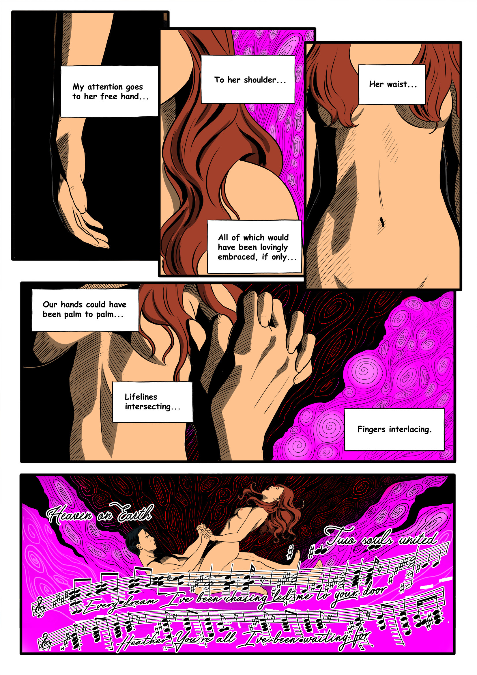 On the other side of the facility, in a ward designated for men, Rich lay over on his side, arms wrapped around him in a straightjacket, his gruff voice reaching out through his daze and ascending to the vent of his cushioned room, the off key notes making their way through air ducts until Heather's melody found Rich's lyrics.